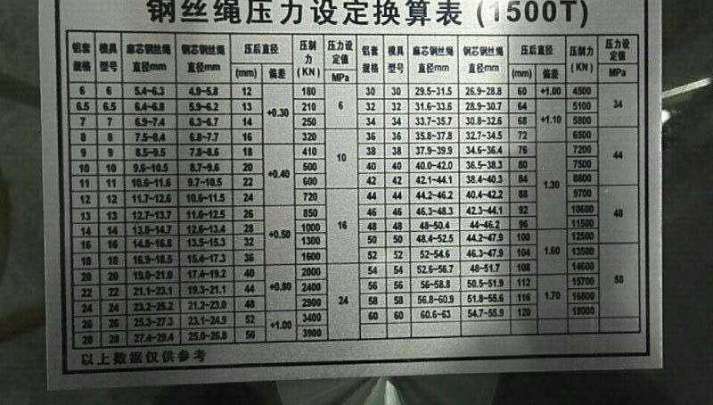 首先模具和鋁套型號是必須對應(yīng)的,比如6mm鋁套就用6#壓套機(jī)模具,8mm鋁套就用8#模具,而鋼絲繩的尺寸不一定是整數(shù),廠家配的模具正常都是偶數(shù)配,壓到?jīng)]對應(yīng)尺寸的鋼絲繩,這點(diǎn)不用擔(dān)心,模具都是有壓制范圍的,正常用1mm的上下范圍,比如15mm的鋼絲繩,可以用14mm或16mm的模具,總之最好的分別方法就是,不管鋼絲繩的尺寸是多少,找數(shù)值離得最近的模具就壓就可以了。還有一個重點(diǎn),剛剛說的情況都是麻芯的鋼絲繩,而鋼芯的鋼絲繩正常都是比麻芯的鋼絲繩所用模具大一個型號。參數(shù)這樣的方法,客戶在使用鋼絲繩壓套機(jī)模具時(shí)就不會不知道如果選擇了。